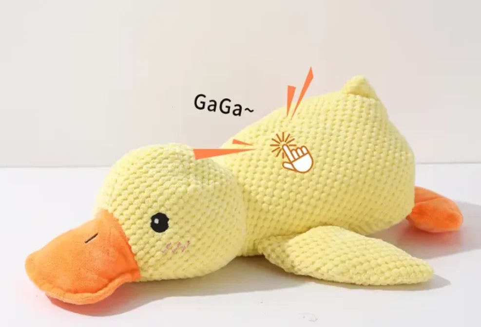 Notre peluche en forme de canard émet un bruit naturel de canard, créant une sensation de confort et de sécurité pour votre chien. Parfaite pour réduire l'anxiété et le stress. Elle est parfaite pour les moments de solitude ou les situations stressantes comme les voyages ou les visites chez le vétérinaire.