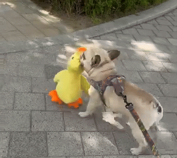 Mon bouledogue en est fou ! Le “coin-coin” l’occupe des heures et il est nettement plus calme ensuite. Peluche toute douce et costaud.