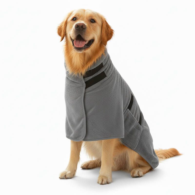 Incroyable après le bain ! Mon bouledogue ne trempe plus tout l’appartement. Le peignoir absorbe super vite et il reste bien au chaud.
